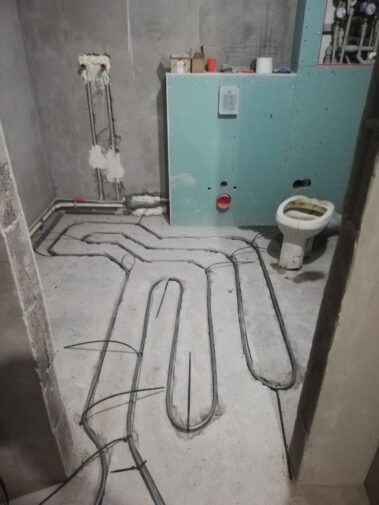 Фотографии наших сантехнических работ: монтаж тёплого пола в квартире. В последнее время все более популярным способом обогрева загородного дома становится теплый пол. Эта отопительная система может использоваться как основной и единственный источник тепла, а может служить для создания дополнительного комфорта. Устройство теплого пола в квартире, несмотря на явные преимущества, связано с некоторыми трудностями. Сделать всё качественно помогут наши сантехники.